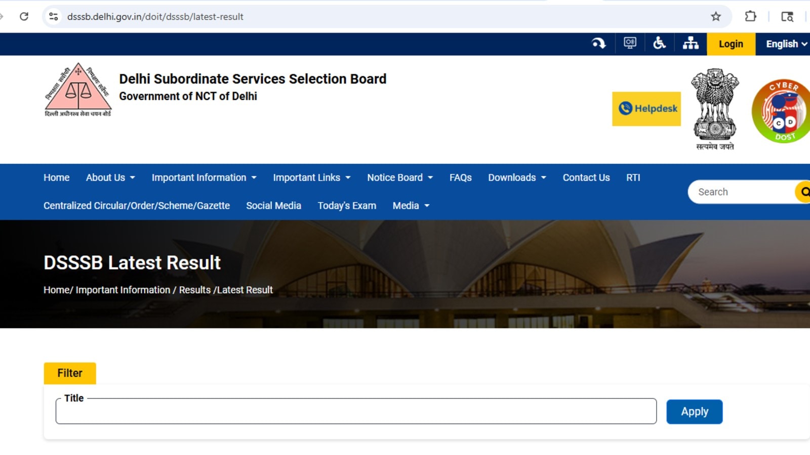DSSSB announces tier 1 results for post codes 802/ 23 and 101/23 (Image: dsssb.delhi.gov.in)
