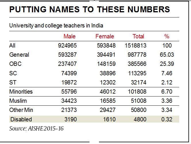 Since 2010-11, the government has been conducting the annual All India Survey on Higher Education (AISHE). But this is the first time that individual profiles of the teaching staff has been sought. Until last year, every institute provided generic data on their teaching staff with numerical break-ups under the heads of designation, selection mode, gender, category (general/SC/ST/OBC), religion (Muslim/other minority) and disability.