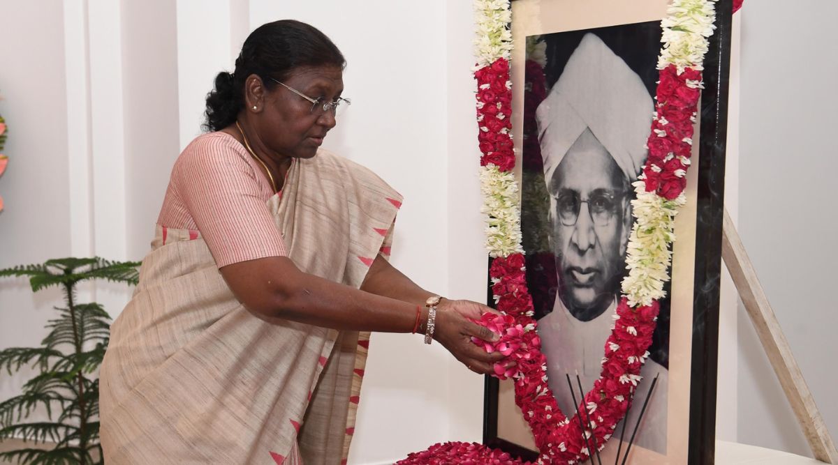 President Droupadi Murmu paid floral tributes to Dr S. Radhakrishnan, former President of India, on his birth anniversary at Rashtrapati Bhavan, on the occasion of Teachers' Day 2023.