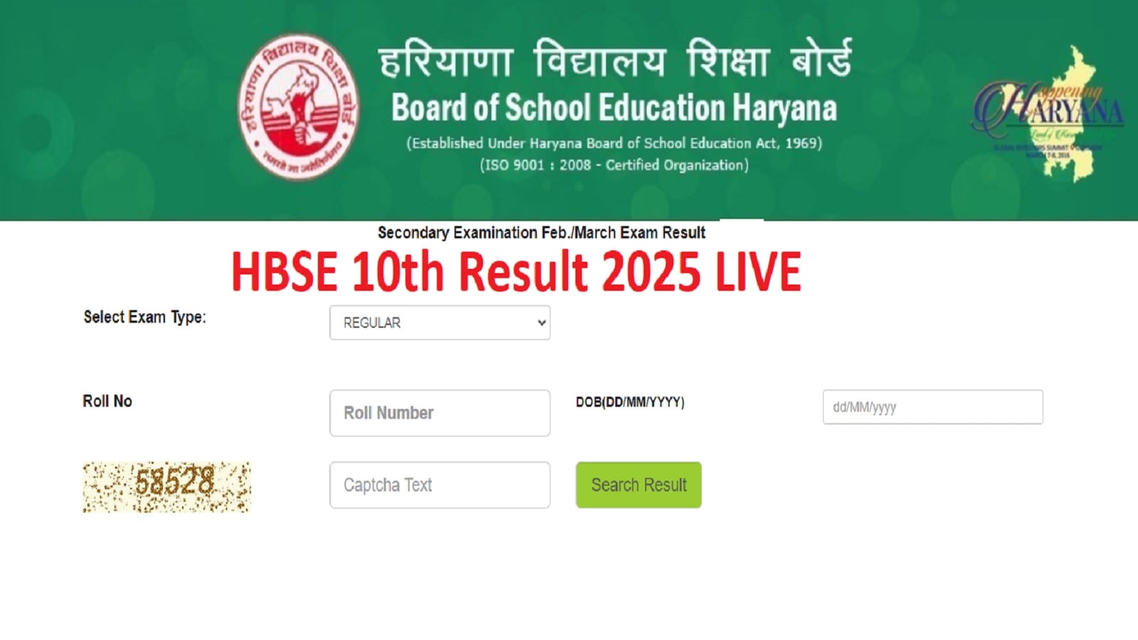 HBSE Haryana Board Class 10th Result 2025 Link at bseh.org.in Live Updates: Website down