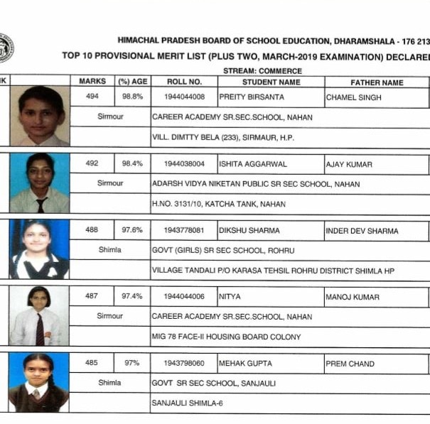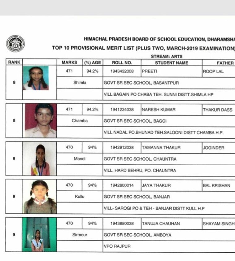 The Himachal-based Government schools have displayed better result than private. This year, 31 students in the merit list and 27 students of private schools also made it to the list.