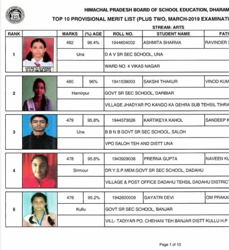 Though 2018 overall topper were from the non-medical stream in 2017, too the topper Ritik Kandoria from Rehan CRC Government Senior Secondary School – Kangra with 492/500 marks for Class 12 science stream. This year, if a science stream student tops, it would create a hattrick.
