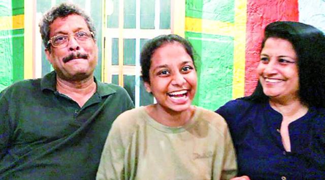 ISC topper Mihika Samant (above) with parents. (Express Photo: Nirmal Harindran)