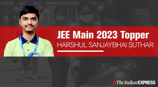 The topper claims to have studied over 8 to 10 hours every day to crack JEE Main. (Graphics by Dinkar Sasi) JEE Main 2023 Result: Following his elder brother’s footsteps, Ahmedabad’s Harshul Sanjaybhai Suthar has his set his eyes on pursuing computer science engineering after cracking JEE Advanced 2023. Harshul is among 20 students who have scored 100 percentile in the JEE Main 2023 result announced today morning.