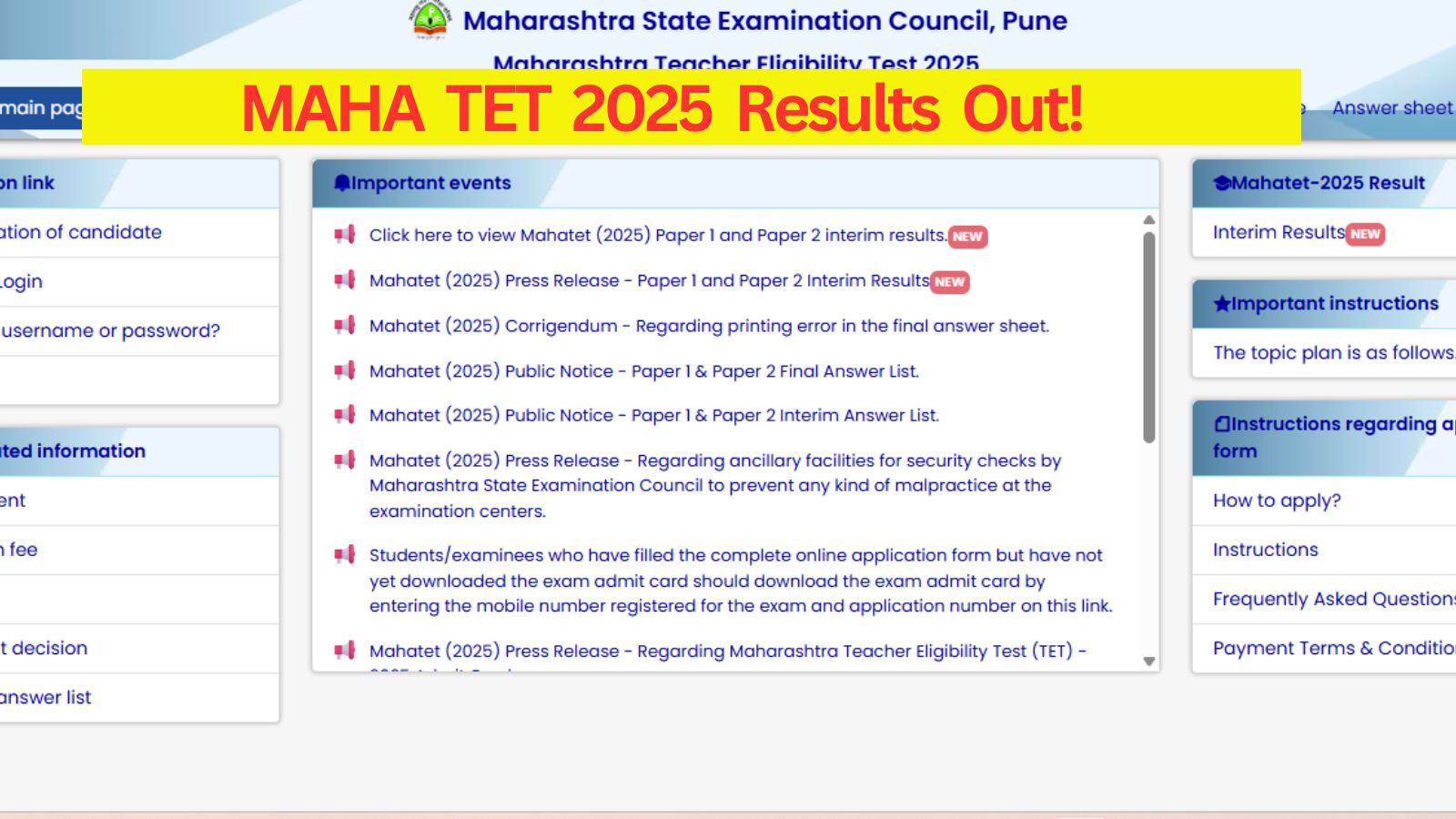 The Maharashtra State Examination Council, Pune, has declared the results of the Maharashtra Teacher Eligibility Test (MAHATET) 2025. Candidates who appeared for Paper 1 and Paper 2 can check their results by logging into the official website, mahatet.in, using their username and password.