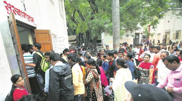 FYJC admission is in progress at SP college in Pune on Tuesday. Express photo by Arul Horizon