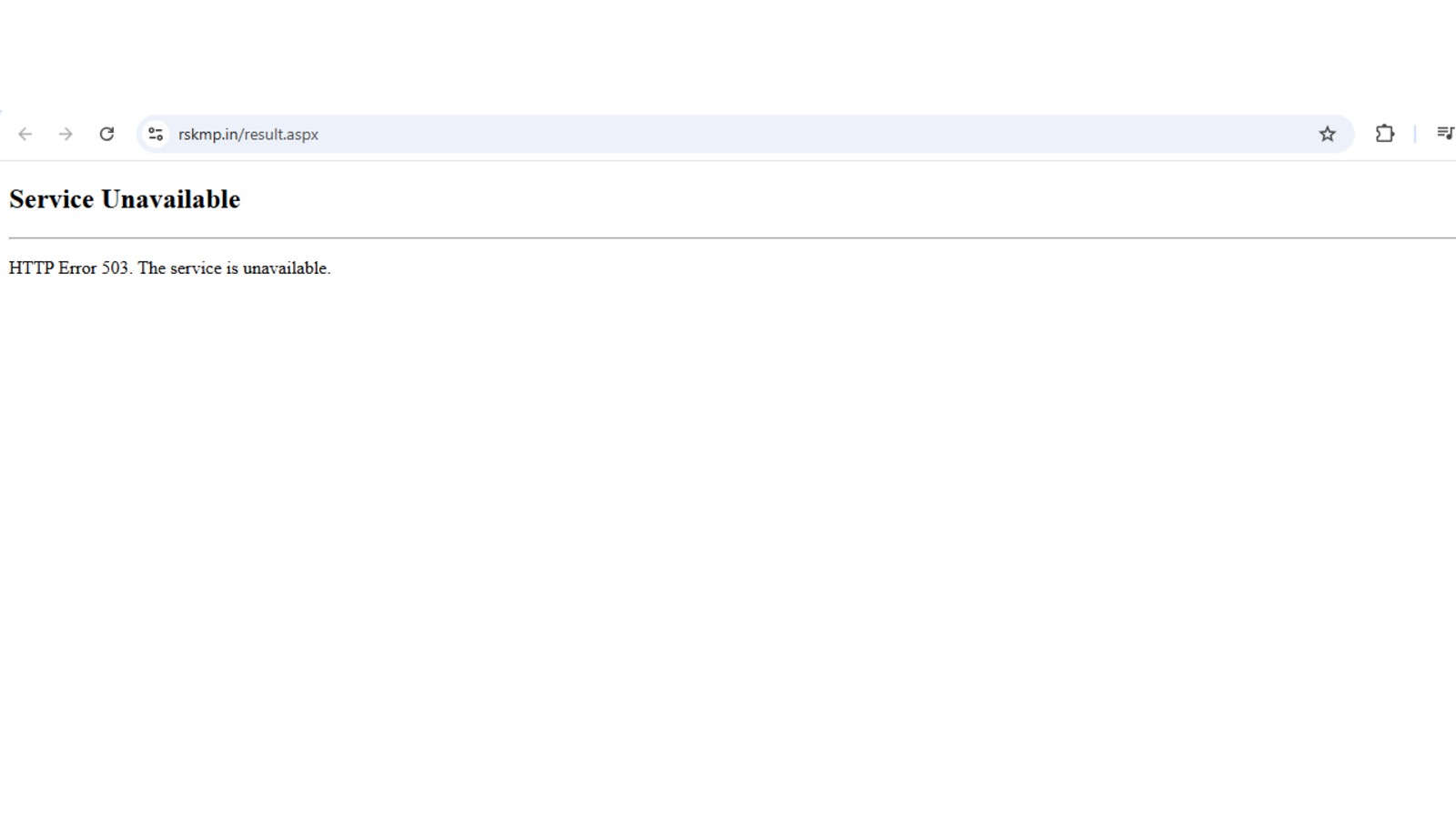 The official website to check the RSKMP 2024 Class 5, 8 results is down now and showing an error - HTTP Error 503.