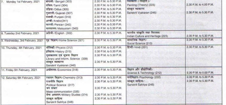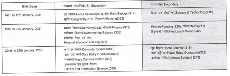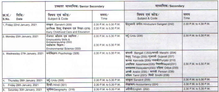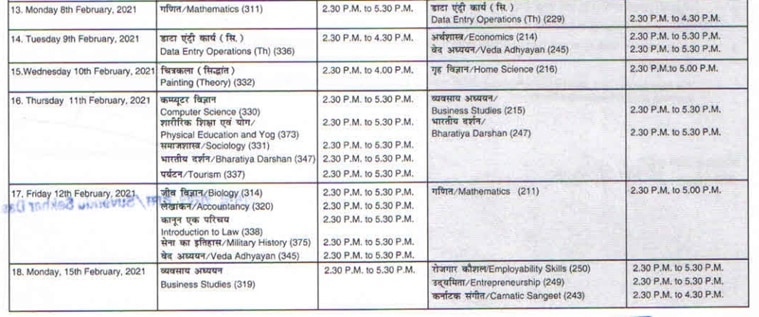 The exam fee paid by the candidates will entitle them to appear in practical exams. For theory exams, candidates will have to download hall tickets from the official website, nios.ac.in. The result of the exams is likely to be declared in six weeks after the last exam, as per the official notice. Here is the entire date sheet for candidates appearing for the exam this year –