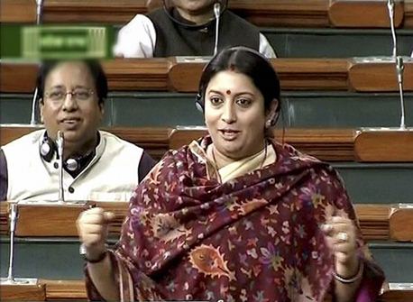 Human Resource Development Minister Smriti Irani in Lok Sabha at New Delhi. Photo: AP