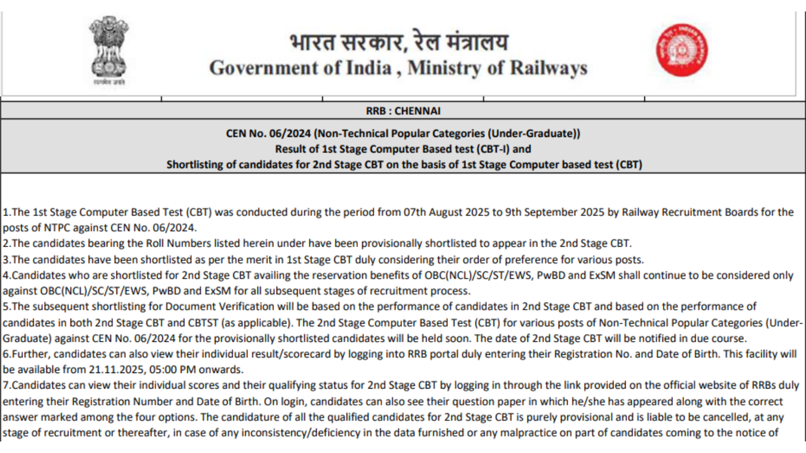 Following the release of results, the RRB will issue the NTPC Undergraduate Merit List 2025, which will include the names of candidates shortlisted after the CBT and document verification rounds. The merit list will be provided region-wise in PDF format on the official RRB portals.