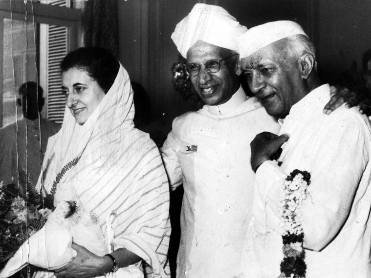 Indira Gandhi, Sarvepalli Radhakrishnan (in middle) and Jawaharlal Nehru. (Express archive photo)