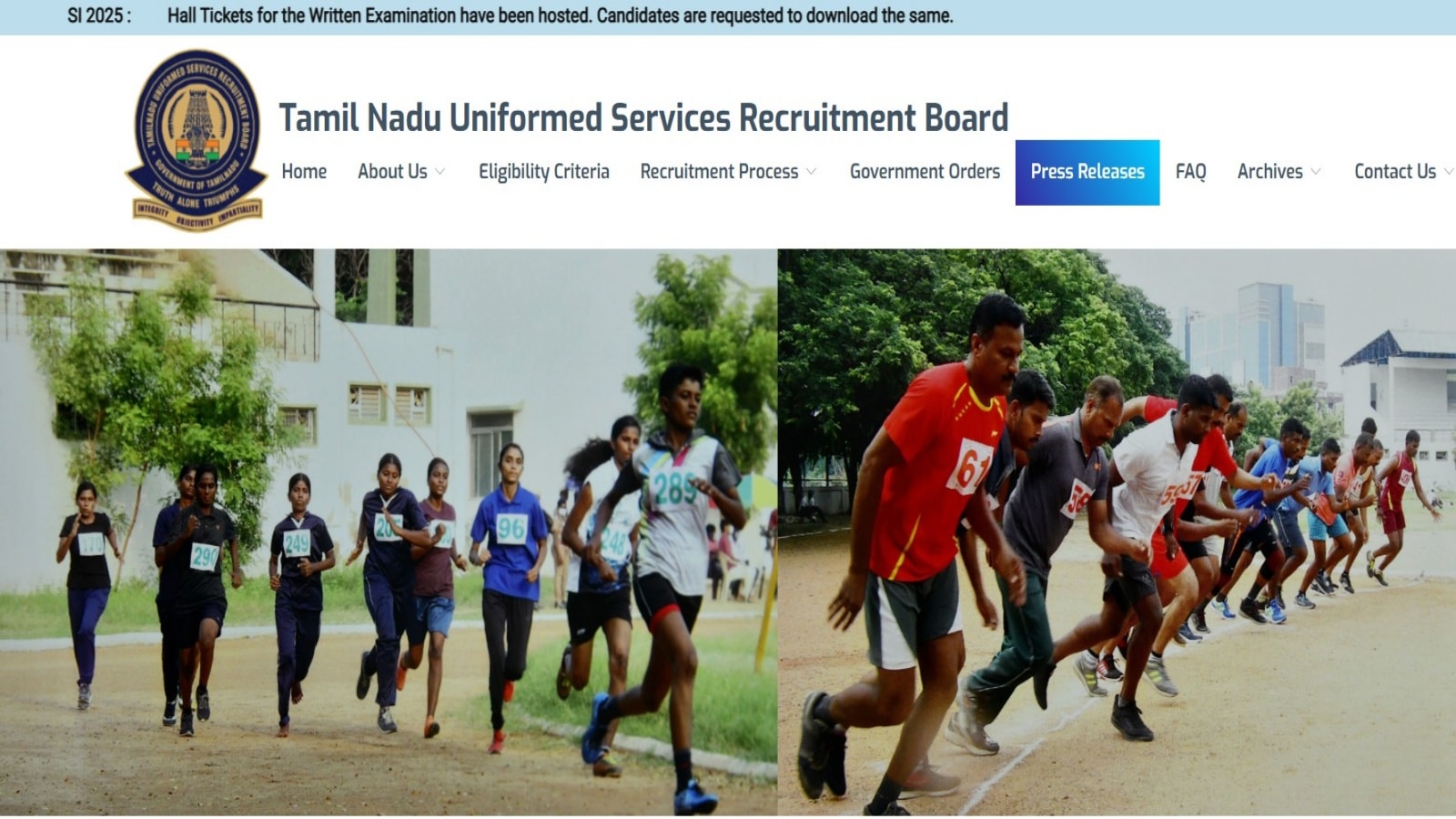 Step 2. On the homepage, click on the link TNUSRB Hall Ticket 2025.