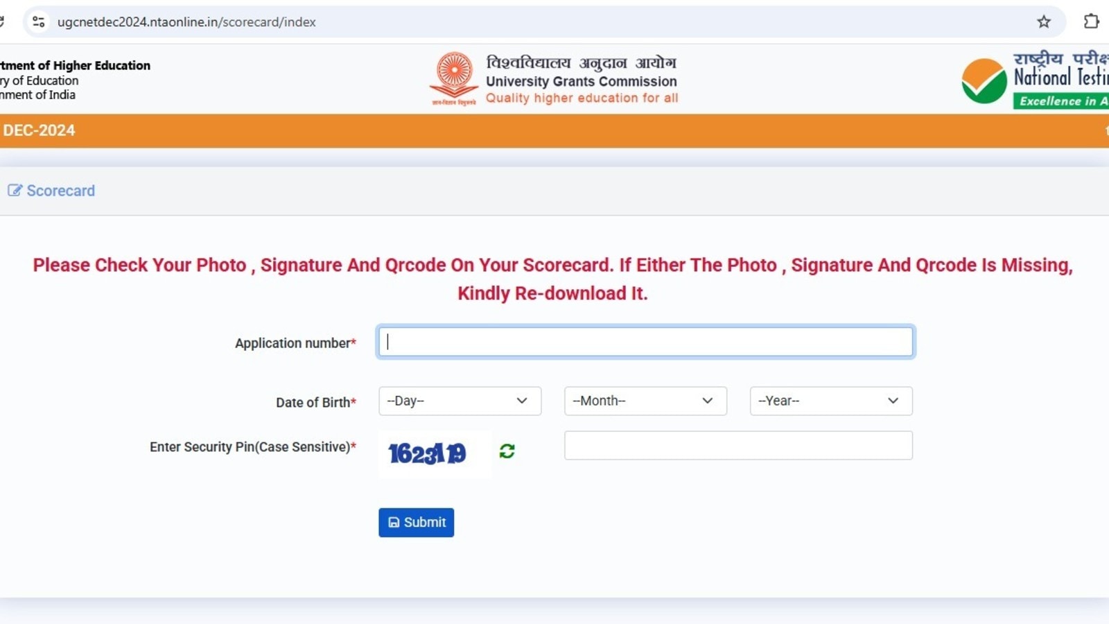 – Fill out your application number and date of birth, then press submit.