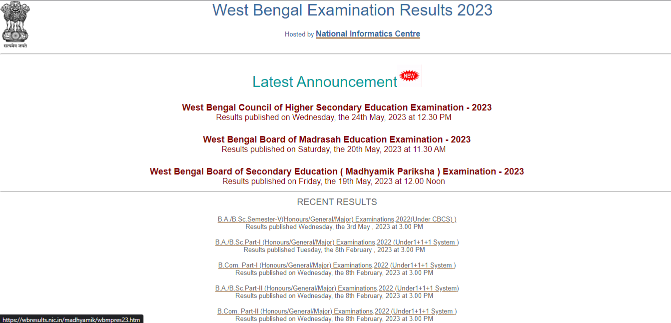 Step 1: Visit the official websites - wb.allresults.nic.in.