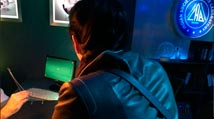 In the picture, the mother of one is donning a black leather jacket with her hair tied in a high ponytail as she looks at a computer in a laboratory.