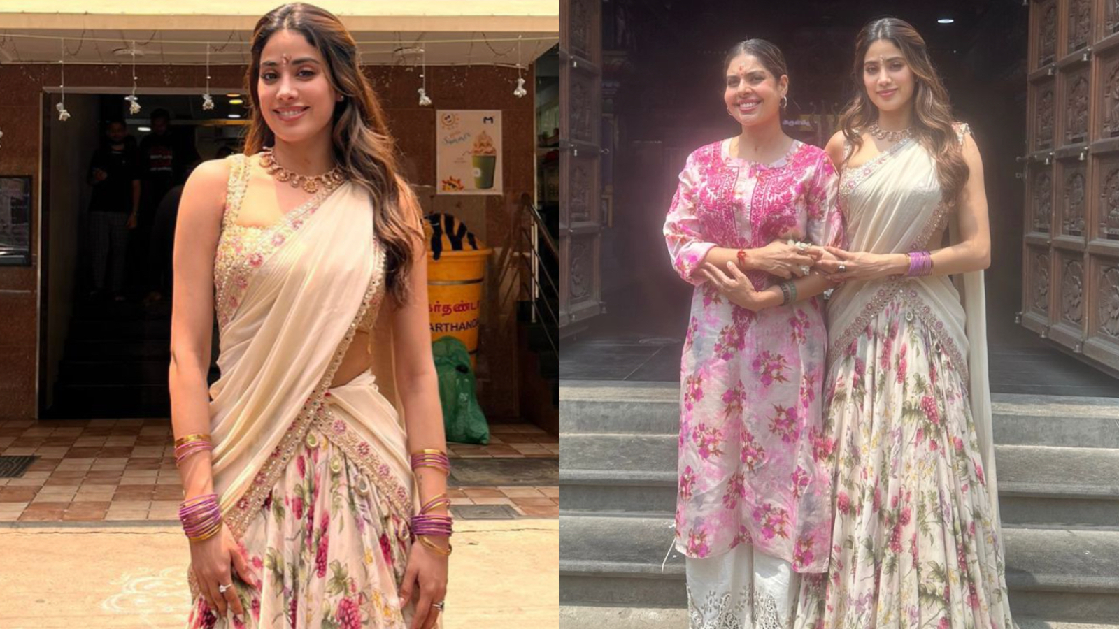 During her stay, Janhvi visited the renowned Muppathamman Temple along with her aunt, Maheshwari, a well-known actress in the Tamil film industry. Janhvi shared pictures from the temple and wrote, “Visited Muppathamman temple for the first time mummas most favourite place to visit in Chennai.” The images also captured her bond with her aunt, who has acted in films like Karuthamma, Ullasam, Nesam, and Suyamvaram.