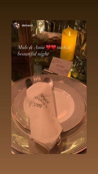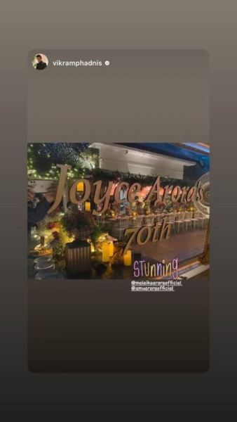 The inside photos from the party show that the Arora sisters left no stone unturned to make their mother’s day a special one. From customised napkins, which read, ‘Joyce Arora’s 70th’, to a huge backdrop reading the same was arranged by Amrita and Malaika. The party also had a special menu.