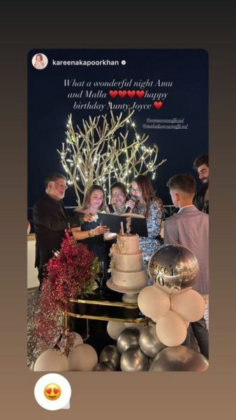 Malaika Arora and Amrita Arora hosted a grand birthday bash for their mother Joyce Arora as she turned 70 on March 2. Kareena Kapoor Khan, Saif Ali Khan, and Karisma Kapoor attended the party, as did Malaika’s beau, Arjun Kapoor. Kareenatreated us with some inside photos and we saw Arjun Kapoor and Amrita Arora’s family posing together as Joyce Arora cut her huge birthday cake.