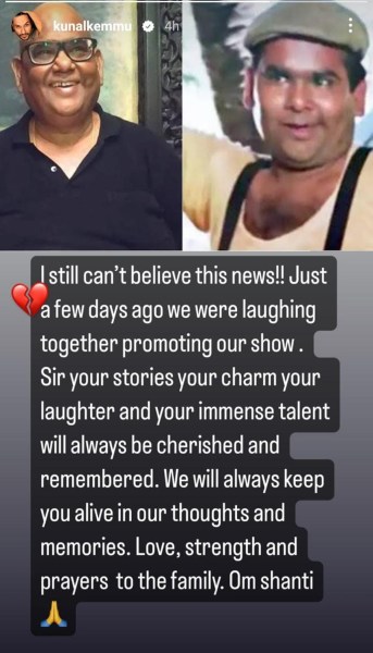 Kunal shared, “I still can’t believe this news!! Just a few days ago we were laughing together promoting our show. Sir, your stories, your charm, your laughter and your immense talent will always be cherished and remembered. We will always keep you alive in our thoughts and memories. Love, strength and prayers to the family. Om Shanti.”