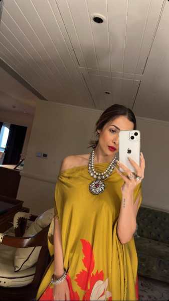 Apart from Malaika and Arjun, Mira Rajput was also in attendance at the pre-wedding festivities of the couple. She shared a selfie with Kunal on her Instagram stories, writing, “Love you” with a groom emoji and also posted pictures of her look.