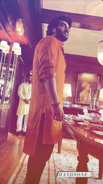 Malaika took to Instagram stories and shared a picture of her look, where she was seen wearing a yellow one-shoulder dress. In another post, she shared a picture of Arjun, wearing a yellow kurta pyjama and captioned it “handsome”. She also shared a group picture from the ceremony and wrote “ladkewale”.