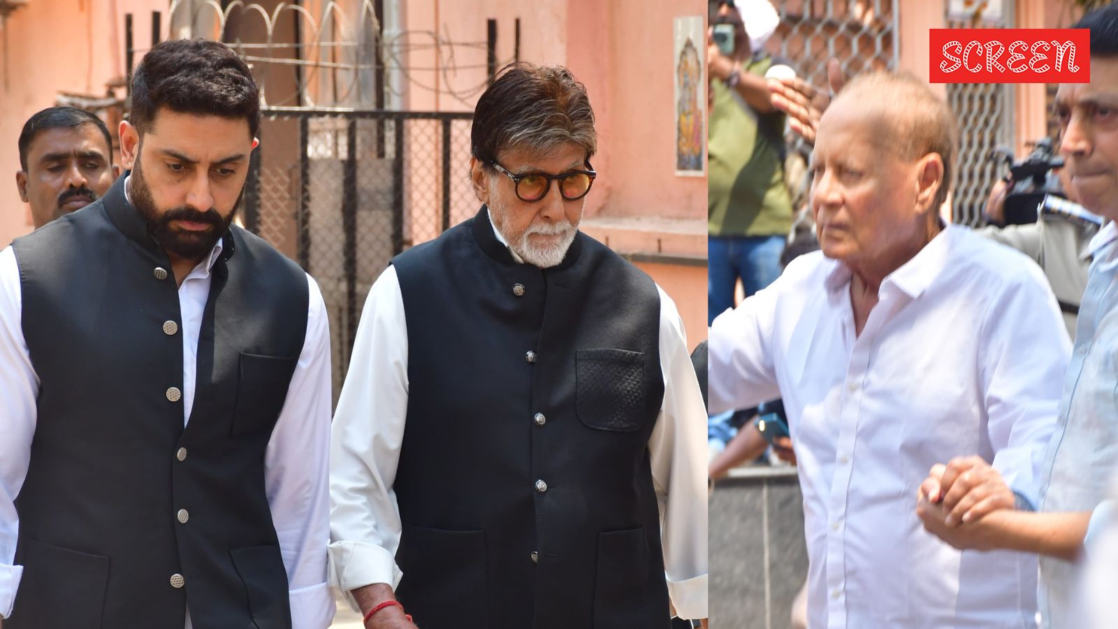 Big B, Abhishek Bachchan attend Manoj Kumar's funeral. (Photo: Varinder Chawla)