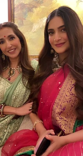 Sonam wrote with the photos, “My Husband isn’t a fan of Karava Chauth as he thinks fasting should only be intermittent 😂 so I’ve never kept it! But both of us are big believers that festivals and traditions are a great excuse for family and friends to come together . I love that my mom loves celebrating it and I love being a part of it and dressing up. @kapoor.sunita you always throw the best dos! Your energy and generosity is legendary and I hope to follow the same path! Happy KC everyone!”