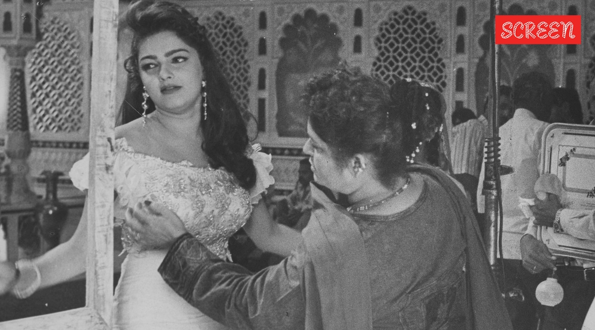 Choreographer Saroj Khan and Madhuri Dixit on the set of film Dil. Express archive photo