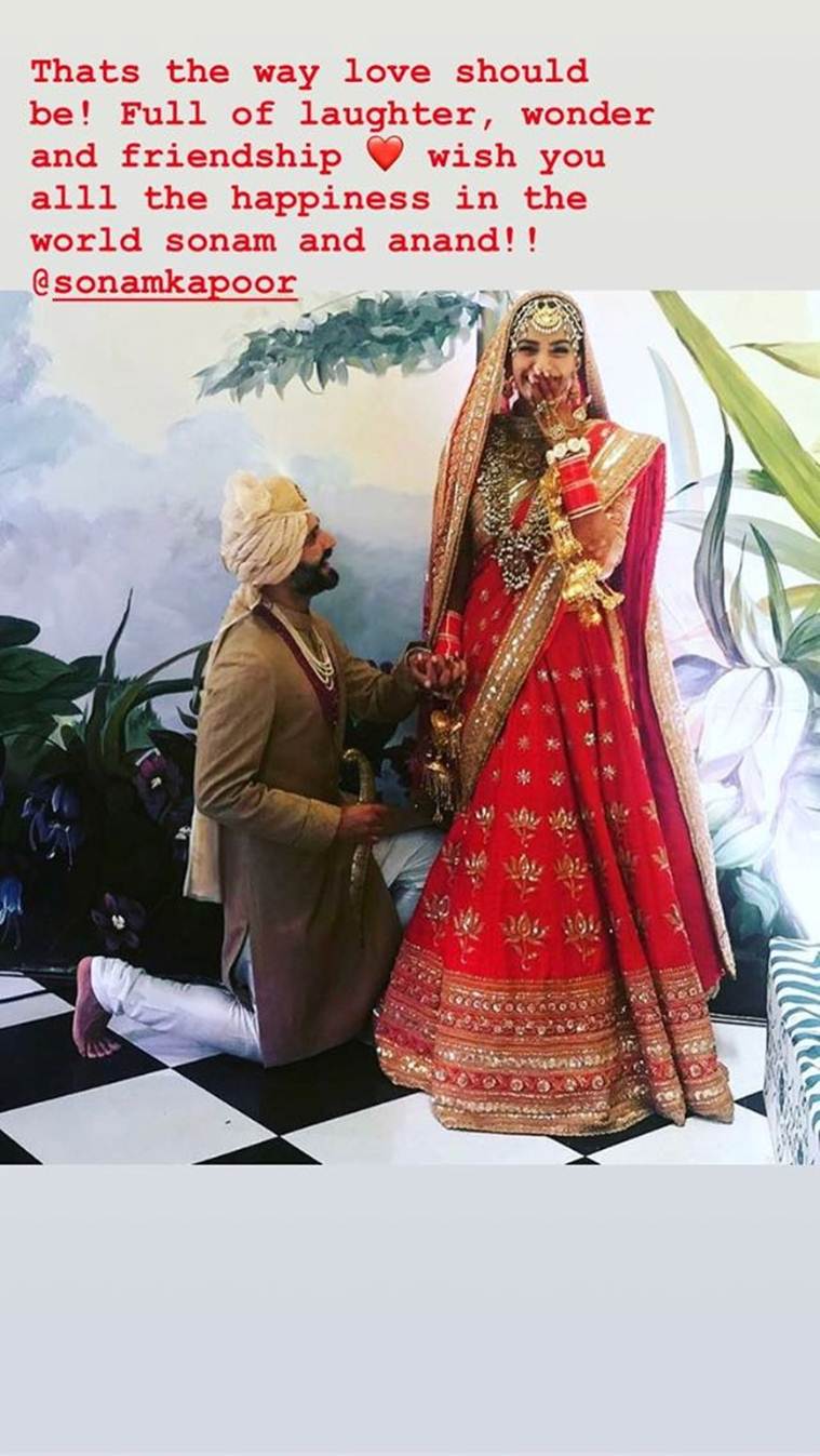 Malaika Arora Khan took to Instagram to send her best wishes to Sonam and Anand. She wrote, "Congratulations dearest @sonamkapoor @anandahuja .... have a beautiful beautiful life together forever♥??."