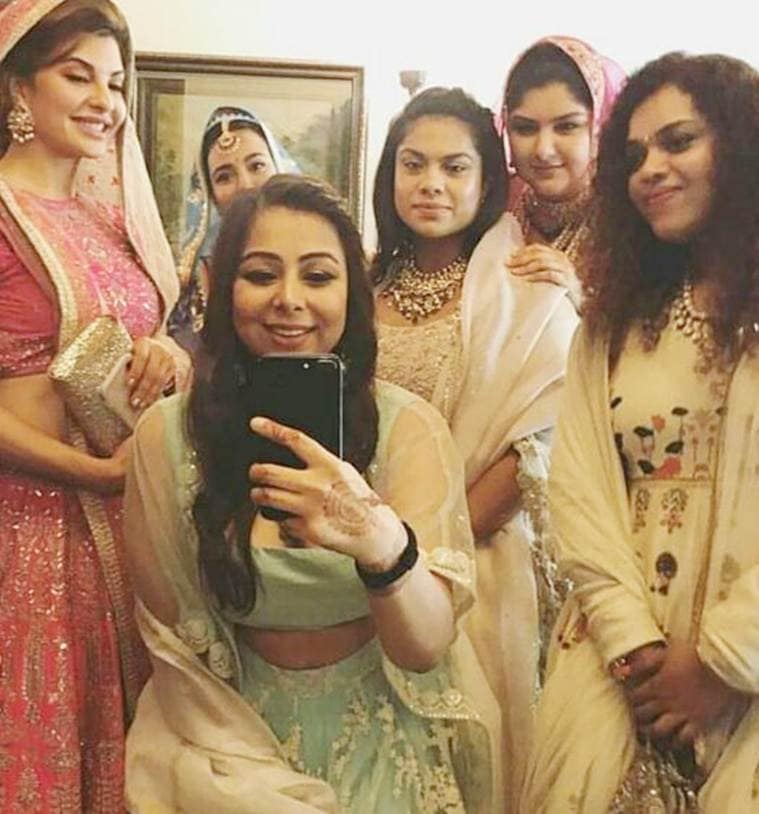 Jacqueline Fernandez and Swara Bhasker get clicked with the girls squad at Sonam's wedding.