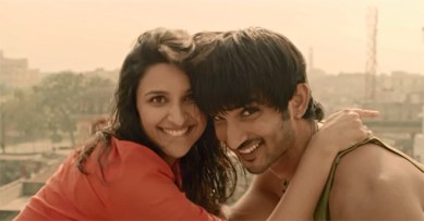 Like its first look,which had a collage of yesteryear images and hand painted posters of the actors,the sound clip of the trailers has Doordarshan’s short film song Ek Chidiyya Anek Chidiyya,hinting at flirtatious nature of Sushant’s character in the movie.