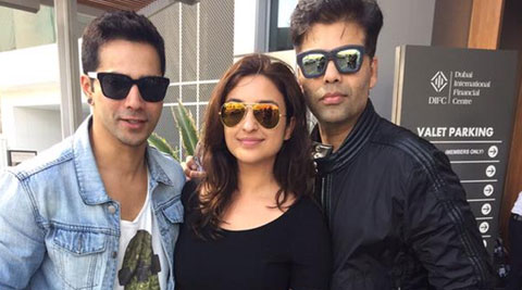 The “Ishaqzaade” actress also shared a photograph with all the stars. While Parineeti is seen wearing a black dress, Varun sports a cool look with a denim jacket. Karan is in an all-black outfit.