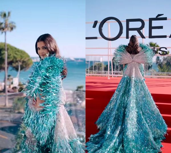 Last year, Aishwarya walked the red carpet in a giant silver hooded gown. Her floor-sweeping gown was adorned with thousands of dainty aluminium paillettes and crystals. There was also an oversized black bow detail cinched on her waist.