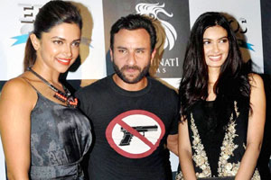 The party began last night at around 9.30 pm at Mini Cooper showroom in Santacruz but the lead actors Saif Ali khan,Deepika Padukone and Diana Penty came post 11 pm.