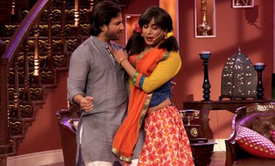 Saif Ali Khan,who was there to promote his upcoming film ‘Bullett Raja’,was seen interacting with Gaurav Gera almost in the same way as Sunil Grover did.