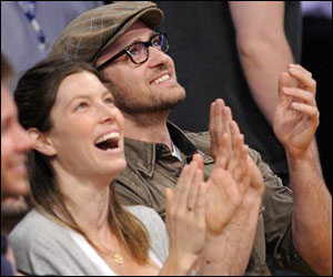 With their faces flashed on the big screen for all to see,Timberlake took off his glasses and kissed Biel while the crowd around applauded,reported ‘Daily Mail online’.