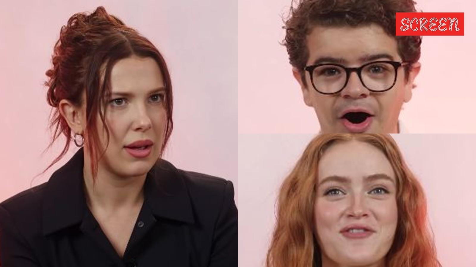 The cast of Stranger Things ask inquisitive questions about each other. (Photo: YouTube/Vanity Fair)