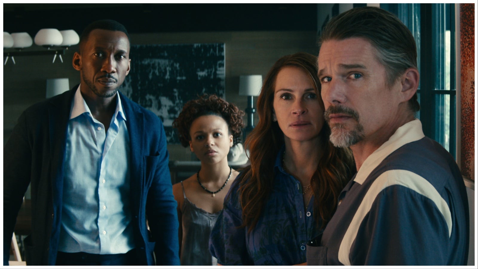 It’s never really clear if we’re meant to take anything in it seriously. The tone is borderline ridiculous when it isn’t super-serious — there’s no in-between. Julia Roberts plays Amanda, a misanthropic middle-aged woman who drags her husband, Clay (Ethan Hawke), and their two kids, for a weekend getaway in the countryside. As it turns out, they picked the perfect time to rent out a luxury home in the middle of nowhere, because mere hours after they’ve settled in, the world seemingly ends.