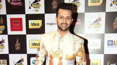 Soon the electronic beats got replaced by the soothing voice of Aslam, dressed in white and blue outfit, and his guitar. The 32-year-old, who has been touring with his band across the globe for years, was seen alone on the stage with his guitar and singing songs like “Pehli nazar mein” and “Aadat”.