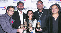 The winners: Richie Mehta (Siddarth), Nagraj Manjule (Fandry), Shivangi Ranawat (Alchemy),Vivek Kajaria (Fandry), and Pan Nalin (Faith Connections)