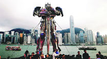 A figure of Transformer is displayed on top of a pier outside the HongKong Cultural Centre in Hong Kong June 18, 2014.