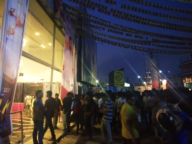 Fans arrive for the early morning show of NGK at Rohini Cinemas in Koyambedu. They are screaming NGK and taking selfies.