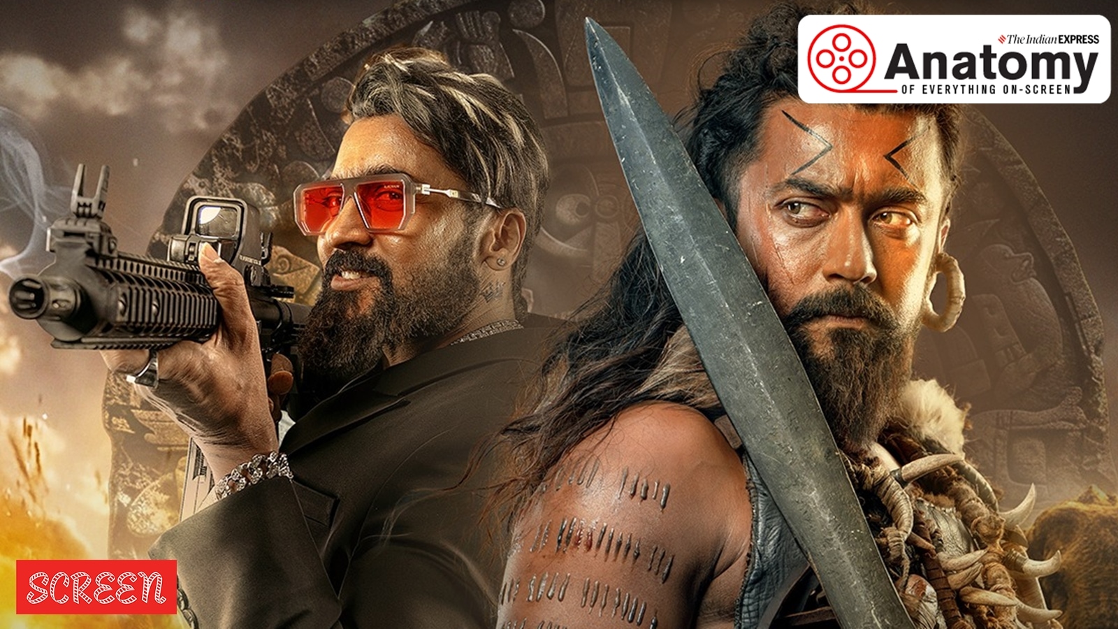 Kanguva stars Suriya in dual roles.