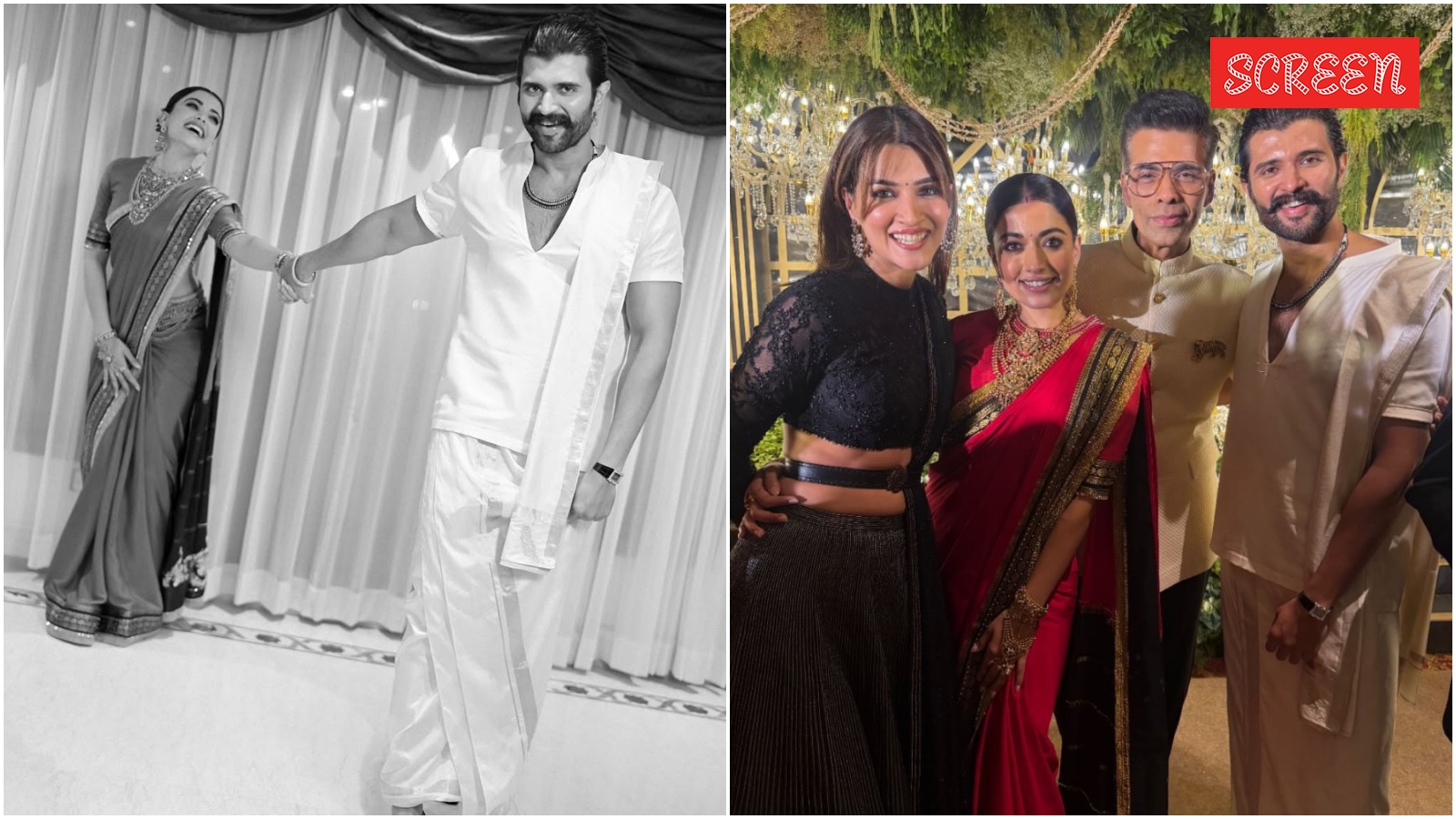 There was a considerable Bollywood presence at Vijay Deverakonda and Rashmika Mandanna wedding reception in Hyderabad. Karan Johar, Kriti Sanon and Homi Adajania were among those who were seen in attendance.