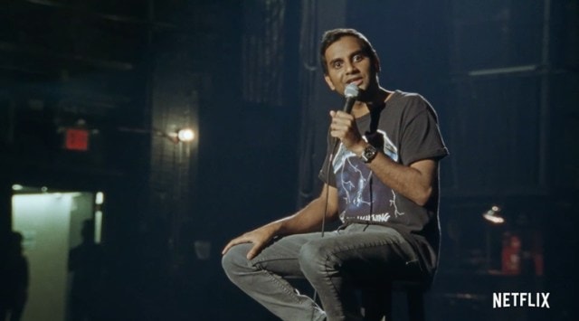 Ansari in Right Now engages a lot with the audience, just like his 2015 Netflix special Aziz Ansari: Live at Madison Square Garden. Here, raising hands has been replaced by clapping, and the energy and the tone is more philosophical than cheeky. There is even a time when he asks the audience to close their eyes and remember their one happy memory from a recent weekend spent with their family, and then to raise their hands. There’s a heavy silence because everyone is trying hard to concentrate. “There’s like five hands up right now. You know why? Because we all had the same shitty weekend, okay. I know what you did, because I did the same thing,” he chuckles.
