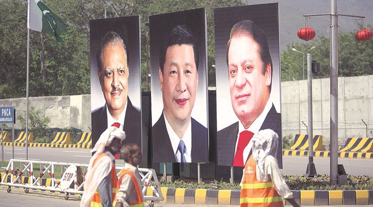 Hoardings in Islamabad of Presidents Xi Jinping and Mamnoon Hussain, and PM Nawaz Sharif. (Source: AP photo)