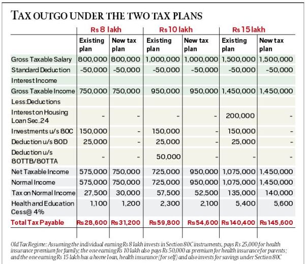 A comparison of tax computations for an individual earning Rs 15 lakh per annum under both tax regimes suggests that his annual tax liability will be Rs 1,45,600 under the new regime, against Rs 1,24,800 in the old regime. However, it is worth noting that to save the additional Rs 19,800 in tax, the individual will have to claim deductions worth Rs 1.50 lakh under Section 80C, Rs 25,000 on health insurance premia for self and family, Rs 50,000 as health insurance premium for senior citizen parents, and Rs 2,00,000 towards home loan interest. Read details here