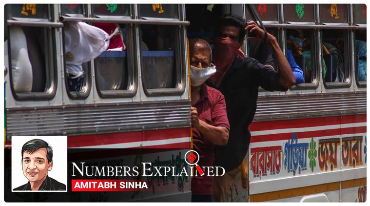 Migrants aboard a bus in Barasat, North 24 Pargana, West Bengal (Express Photo: Shashi Ghosh)