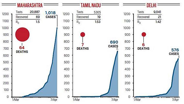 Coronavirus curve in India: Maharashtra, Tamil Nadu and Delhi account for the highest cases in India.