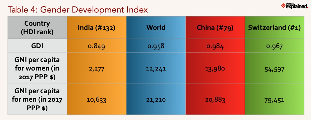 That India is behind Switzerland is hardly surprising but the more worrisome insight is that India is significantly behind the world average as well (see Table 4). As China’s GDI — which is higher than Switzerland’s — shows that being relatively low on overall per capita income does not bar a country from plugging the gender gap.